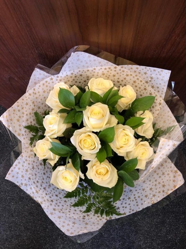 Hand ties are arranged so the customer will just have to put the flowers in a vase.