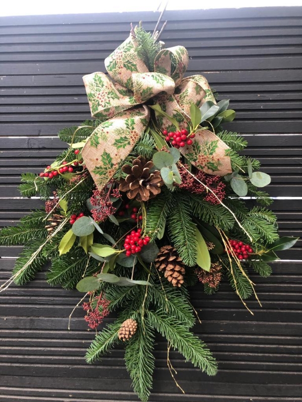 Door swag made with fresh blue spruce other Christmas foliage's.